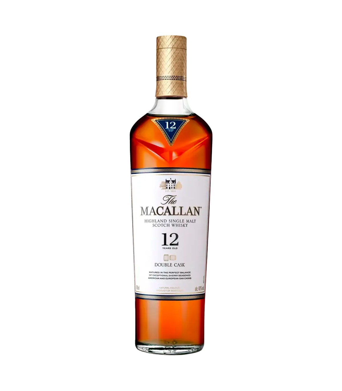 The Macallan Double Cask 12 Years, en botella de 700 ml, es un single malt escocés que representa la excelencia y el equilibrio característicos de la destilería Macallan. Este whisky se elabora a partir de una cuidadosa combinación de barricas de roble americano y europeo, ambas previamente sazonadas con jerez oloroso, lo que le confiere una complejidad y suavidad excepcionales. El proceso de maduración durante doce años permite que los sabores y aromas se integren de manera armoniosa, resultando en una experiencia sensorial refinada y acogedora.