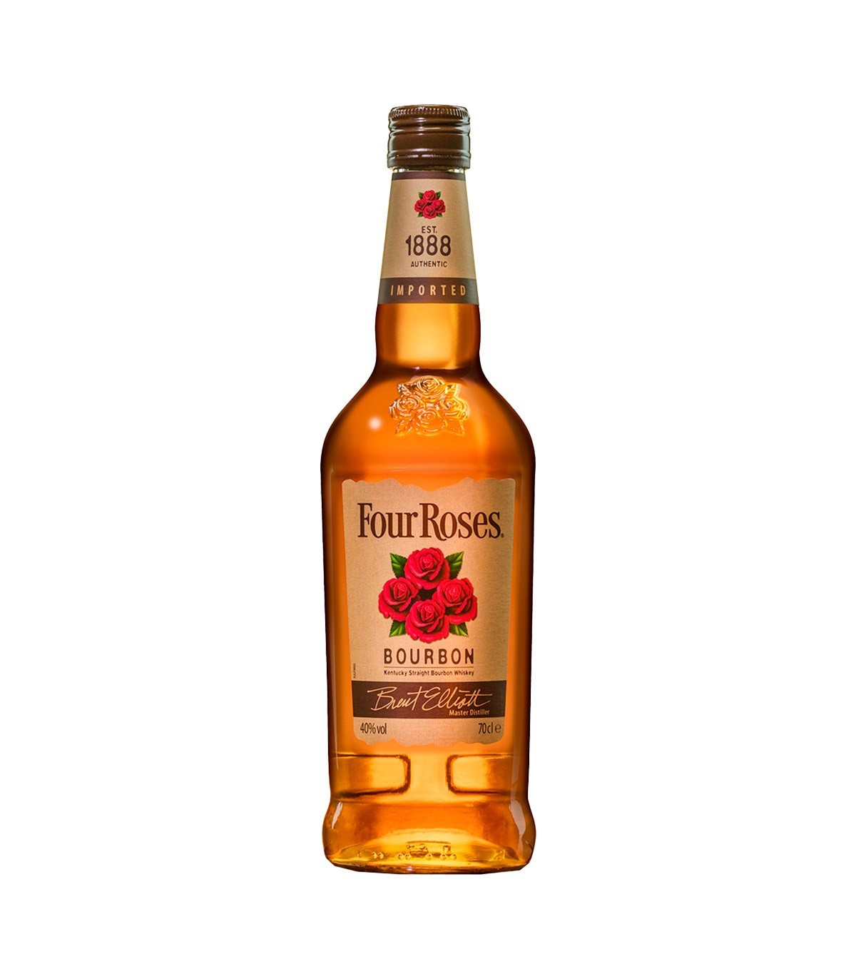 Presentado en una botella de 700 ml y con una graduación alcohólica del 43%, Four Roses es ideal para disfrutar solo, con hielo o en cócteles clásicos, realzando cualquier ocasión con su carácter suave y elegante.